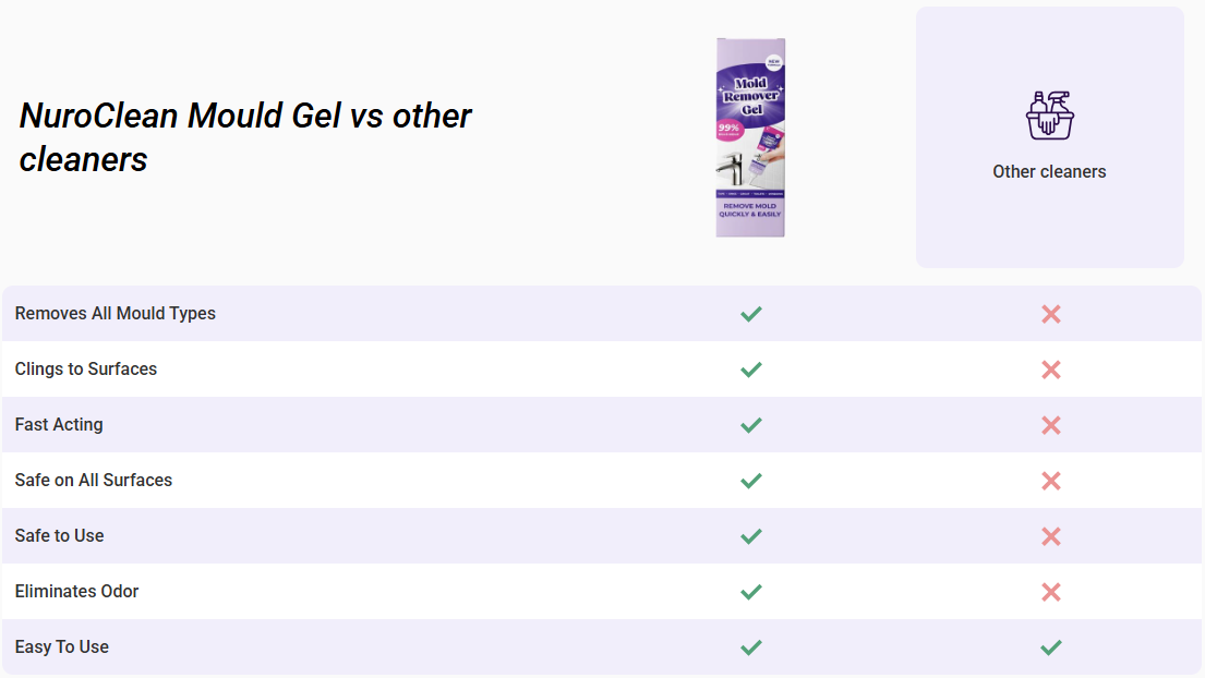 Forget weak sprays that drip down the wall before they even start working. NuroClean Mould Gel uses a thick, non-drip formula that clings to any surface, penetrates deep, and removes mould at its source!