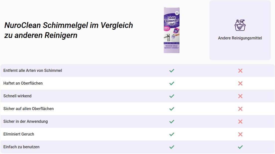 Vergiss schwache Sprays, die die Wand schon runterlaufen, bevor sie überhaupt wirken. Das NuroClean Mould Gel nutzt eine dicke, tropffreie Formel, die an jeder Oberfläche haftet, tief eindringt und Schimmel direkt an der Ursache entfernt!